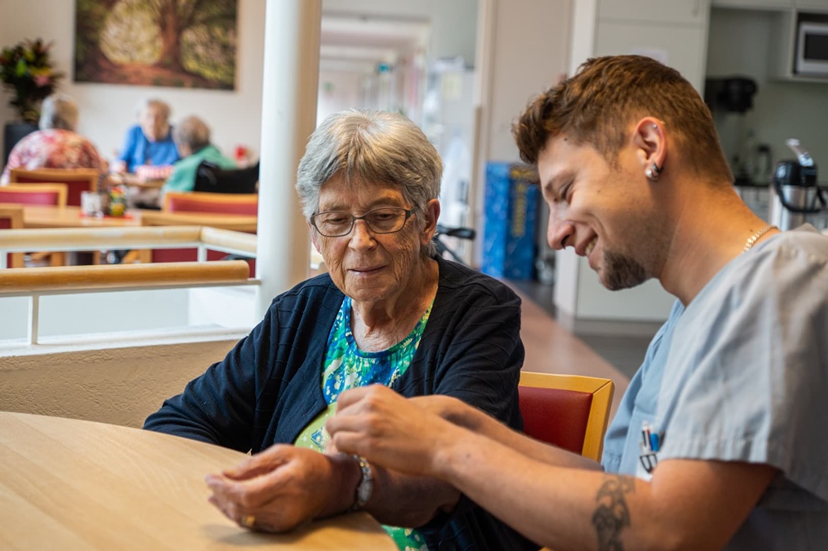 Le Betagtenzentrum Laupen offre aux personnes âgées un foyer moderne et accueillant, qui répond à toutes les exigences de confort et de sécurité. L'architecture bien pensée crée de nombreux lieux de retraite privés et des niches qui invitent à la détente. Cinq groupes d'habitation accueillent 104 personnes dépendantes dans un foyer confortable. Les chambres individuelles spacieuses disposent d'une salle de bain privée, la plupart avec douche, ainsi que d'un balcon ou d'un coin jardin.